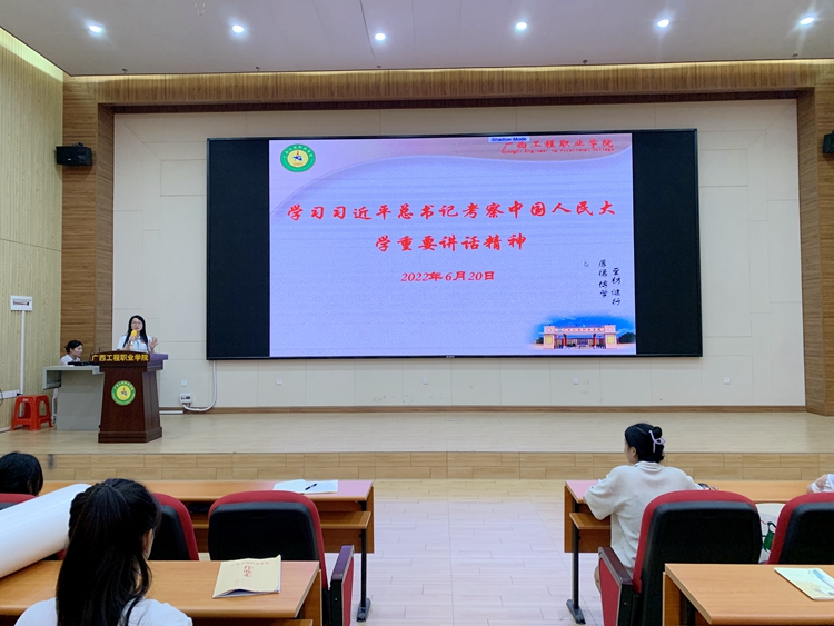 会上,黄秋霞副书记与青马班学员们一起学习了习近平总书记考察人民大学重要讲话精神和习近平总书记在庆祝中国共产主义青年团成立一百周年大会上的重要讲话精神。黄副书记要求学员们要深入学习领会总书记的重要讲话精神,坚定“四个自信”、做到“两个维护”,牢记党的教诲,立志民族复兴,努力学习,练就过硬本领,“用脚步丈量祖国大地,用眼睛发现中国精神,用耳朵倾听人民呼声,用内心感应时代脉搏”,用实际行动践行“强国有我”的铮铮誓言,不负韶华,不负时代,不负人民,在青春的赛道上奋力奔跑,争取跑出当代青年的最好成绩,为实现民族复兴及学校的建设发展贡献青春力量。