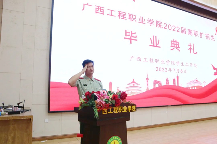毕业也意味着站在人生的新起点新征程上,希望2022届高职扩招生面对新选择、展现新作为,从零学起、从头干起,保持“归零心态”,在新的工作岗位上认真学习、努力进取;继续保持军人本色和良好作风,时刻注重优良品德的养成,模范遵守社会公德和国家法律法规,珍惜退役军人的社会荣誉。拿出愚公移山、水滴石穿的韧劲,以饱满的热情投身到社会主义现代化强国建设中。
