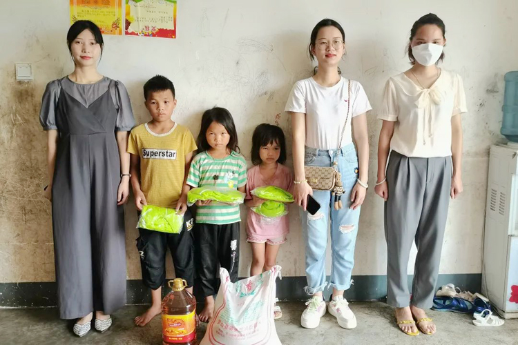 此次暑期“三下乡”实践活动,校团委书记梁凤琴等指导老师带队走访家境困难的留守儿童,并送上米、油和衣服,希望孩子们茁壮成长成才。