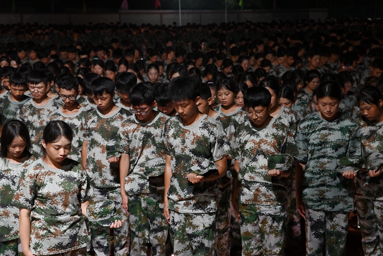 晚上20时,军训新生集结学校田径运动场,面向鲜艳的五星红旗庄严宣誓:勿忘国耻、吾辈自强,以史为鉴、珍爱和平。字字深入人心,感人肺腑。进一步激发了同学们自觉践行社会主义核心价值观,培养高尚品德,树立远大理想,勤奋学习,努力成长为祖国建设的有用之材。宣誓完毕,全体师生进行了默哀。