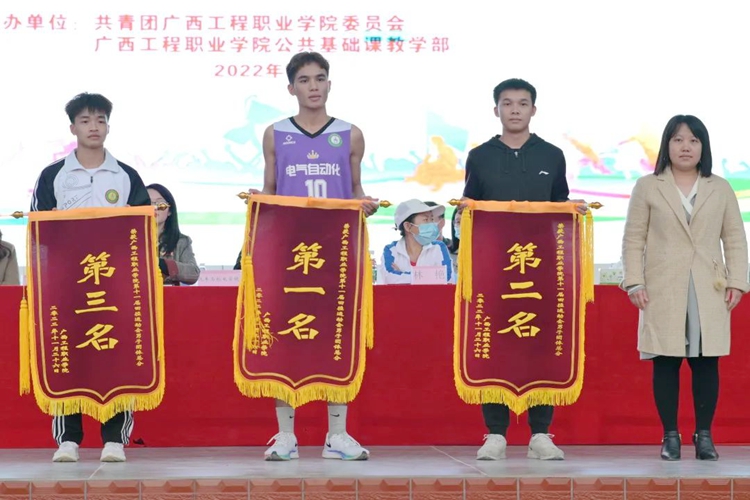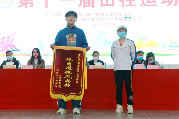 公共基础课教学部负责人甘坤成宣布团体获奖名单。男子团体总分排名:汽车与机电学院荣获第一名,土木工程学院荣获第二名,经济管理学院荣获第三名。 女子团体总分排名:教育学院荣获第一名,土木工程学院荣获第二名,经济管理学院荣获第三名。男女团体总分排名:教育学院荣获第一名,土木工程学院荣获第二名,经济管理学院荣获第三名。铁道与航空学院荣获体育道德风尚奖。出席开幕式的学校领导分别为获奖团队颁发荣誉锦旗。