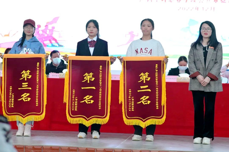 党委副书记黄秋霞为荣获女子团体总分一、二、三等奖的学院代表颁奖