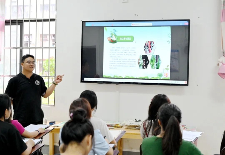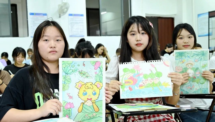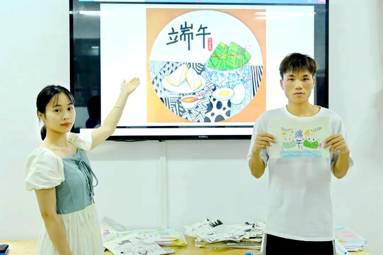 教育学院黄能老师在绘画课堂上,展示端午文化特色,并以绘画的形式引导同学们认知传统、尊重传统、弘扬传统文化,在美育中育人,践行社会主义核心价值观。