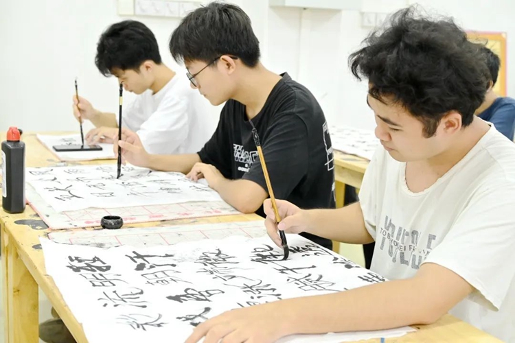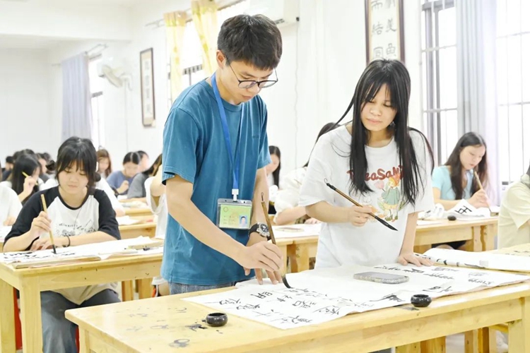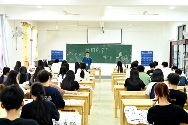 教育学院韦国庆老师把端午文化推进书法课堂,讲述端午故事,指导学生以描摹书写端午文化相关的诗词作品,让同学们在享受书法艺术的同时,感受端午文化,弘扬中华优秀传统文化,激发爱国情怀。