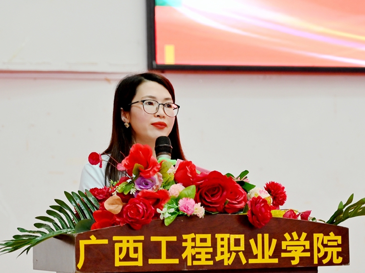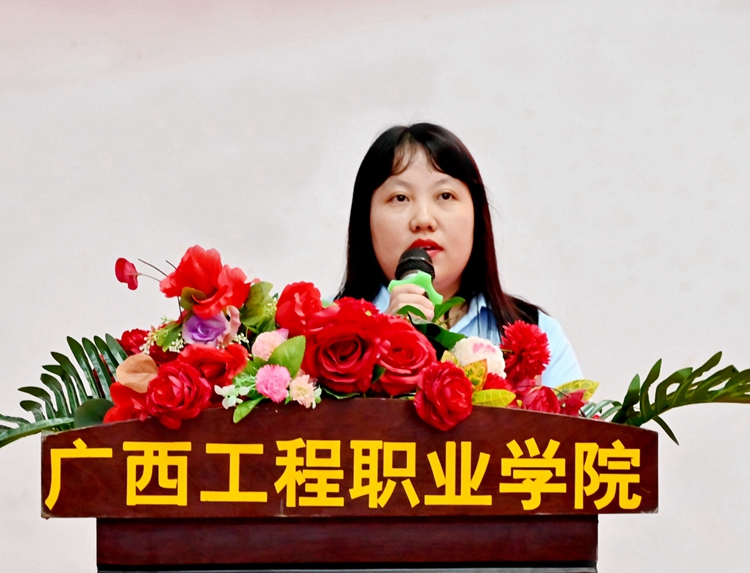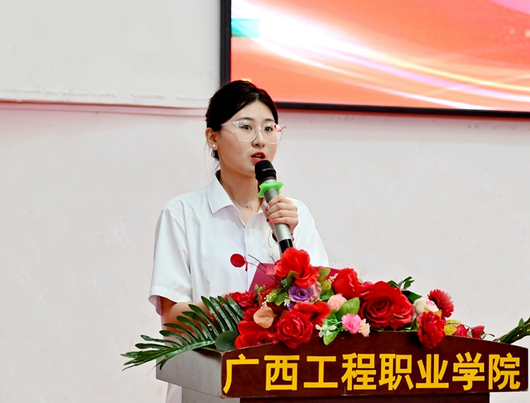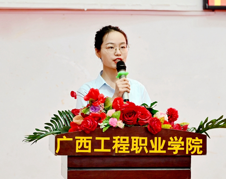 教师代表谢锡洁老师发言,她代表教师给毕业生送上了美好祝愿,希望同学们树立终生学习的理念,学会做人,学会做事,学会合作,不断培养和夯实自己的实力;始终保持对生活和工作的热爱,扎实工作,努力奋斗,充满信心地面对未来。最后祝福大家毕业顺利!前程似锦!归来依旧少年!