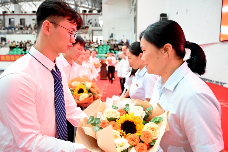 浓浓师生情,拳拳桃李意!毕业生代表向学校领导、老师献上感恩的花束,感谢学校领导和老师的悉心栽培和教导。
