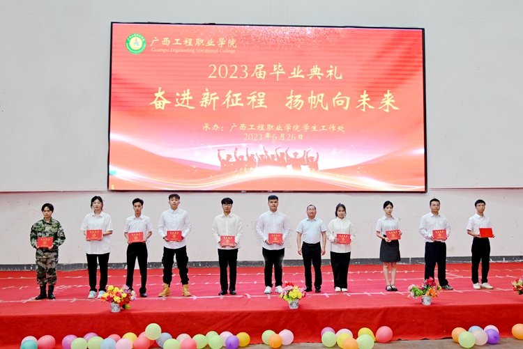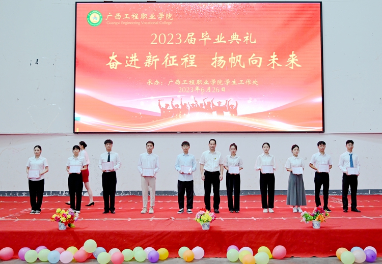 学校纪委书记、副校长彭高彬宣读关于表彰荣获自治区优秀毕业生和校级优秀毕业生的决定,出席毕业典礼的领导分别为优秀毕业生颁奖。