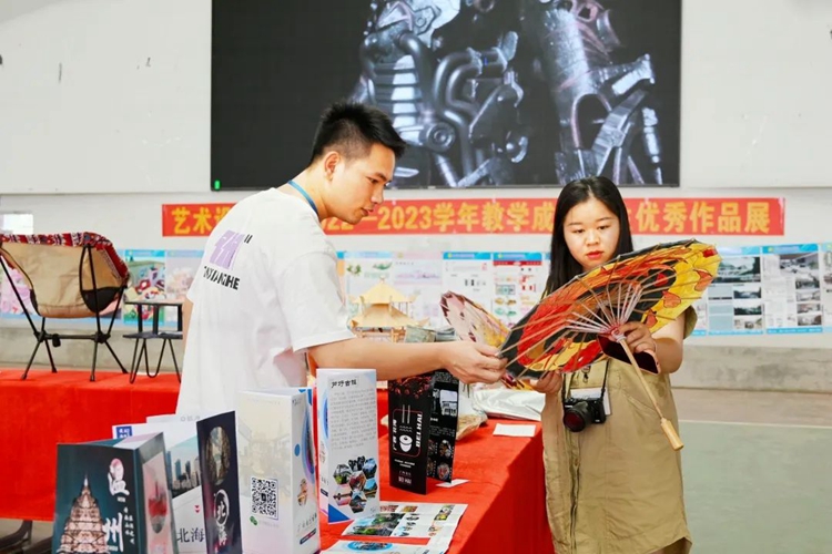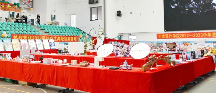 2023年6月27日至30日,艺术设计学院2022—2023学年教学成果学生优秀作品展在体育馆举行,展出作品涵盖了建筑室内设计、建筑设计、广告艺术设计、产品艺术设计专业学生的设计作品。作品风格迥异,形式多样,充分展示了学子们的设计才能和美学思想。作品展吸引了众多老师和学生前来参观。