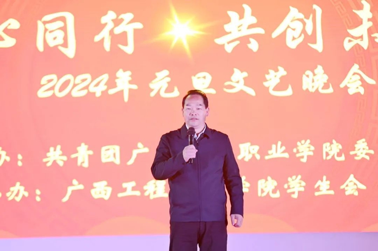 晚会伊始,校长罗艳妮致辞,她深情回顾了过去一年学校办学取得的成绩,对新的一年做出美好展望,激励全体师生在新的一年里成为更好的自己,共同致力于学校的高质量发展,继续奔跑在奋斗之路上,用广工程院人的“奋进之笔”继续书写新时代幸福美好beat365唯一官网的优异答卷。