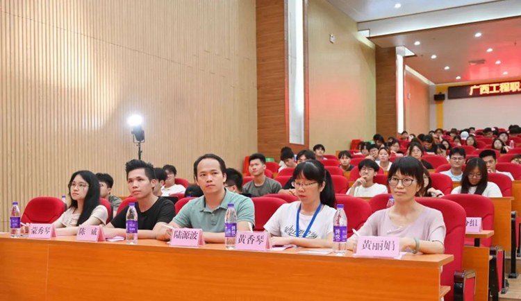 学校党委宣传部部长黄丽娟,党委办公室副主任黄香琴,艺术设计学院党支部书记、院长覃凤姣,艺术设计学院党支部副书记赵志辉,继续教育与培训学院科长陆源波及国防科技学院办公室主任黄秀妮出席比赛现场。