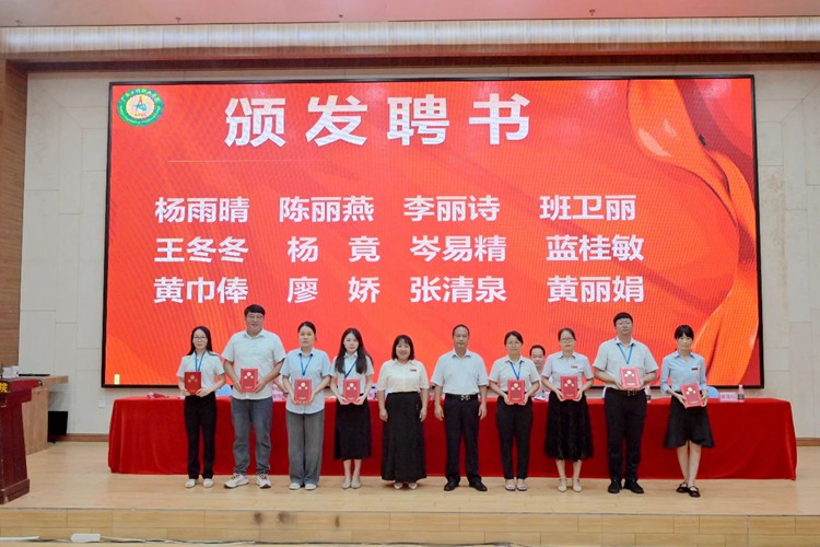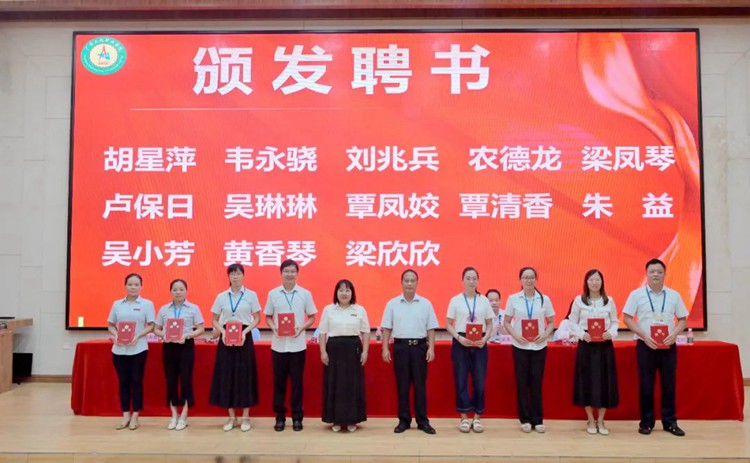 会上,举行了聘书颁发仪式,董事长李益及党委副书记、校长罗艳妮为学校中层干部颁发聘书。
