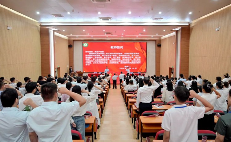 会上还举行了重温教师誓词仪式,全体教师在党委副书记黄秋霞的领誓下庄重宣誓。铮铮誓言,是为党育人、为国育才的决心,更是为教育发展、国家繁荣、民族振兴和学校高质量发展而努力奋斗的信心!