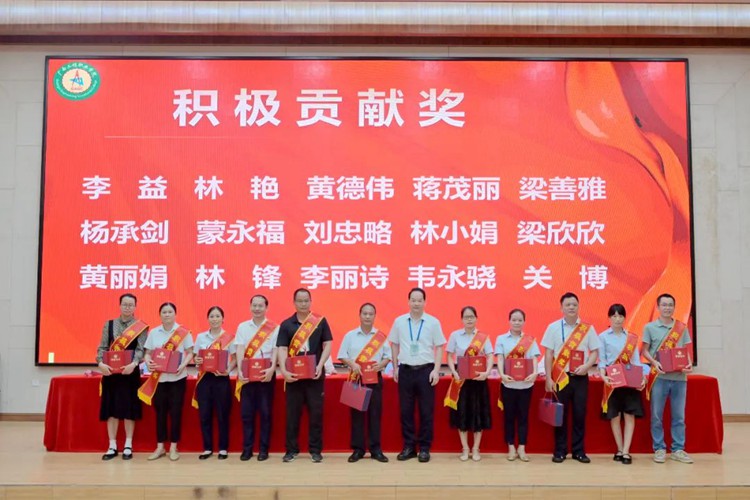 学校董事长李益,党委书记、督导专员蒙本曼,党委副书记、校长罗艳妮,党委副书记黄秋霞,副校长黄德伟、蒋茂丽,校长助理梁善雅等校领导出席大会,学校全体中层干部、受表彰的先进个人、全体教职工参加表彰大会。副校长蒋茂丽主持会议。