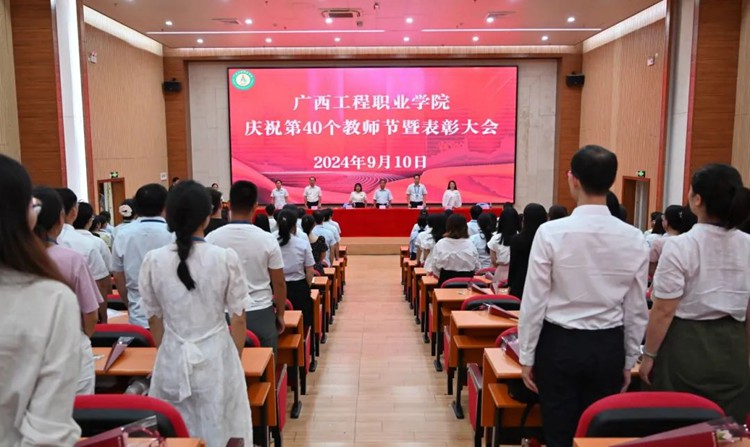 在第40个教师节及全国教育大会召开之际,全体广工程院人将大力弘扬和践行教育家精神,牢记立德树人根本任务,在坚守初心中铸魂育人,在笃行实干中担当作为履尽职责,为建设高水平职业院校赓续奋斗,为奋力谱写中国式现代化广西篇章贡献广工程院力量。
