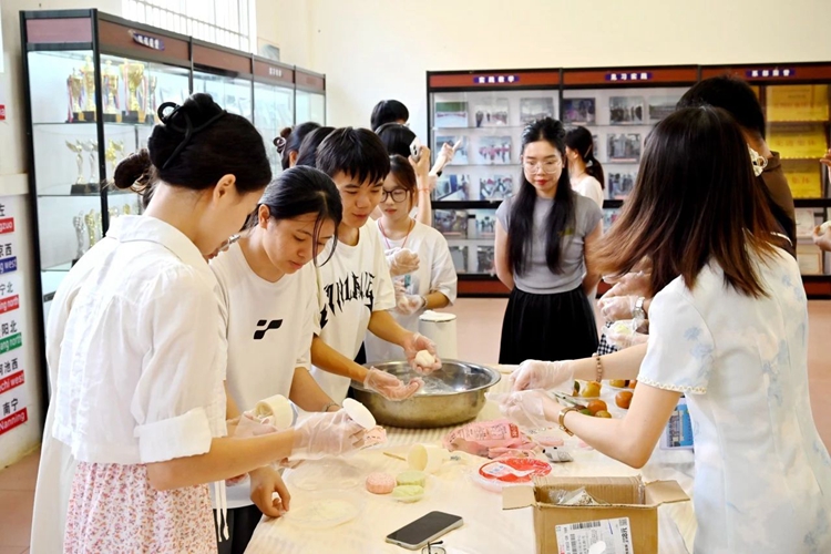 活动中,师生们热情高涨,欢声笑语。虽然技巧不够娴熟,但是在大家的相互帮助下,一个个诱人的月饼跃然手上,师生们成就感十足。