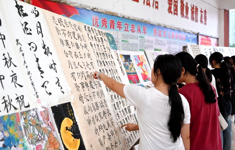 9月5日,学校团委组织开展“我们的节日·中秋”书画展活动。活动吸引了同学们的广泛关注和参与,同学们积极深入了解关于中秋节传统习俗,以手中的笔,描绘了中秋佳节的美丽画卷,写下关于中秋佳节的书法作品,展现中秋节的传统文化习俗,表达自己对中秋节的美好祝愿,展现了中国传统节日的美丽和中国文化传承与发展的独特魅力。