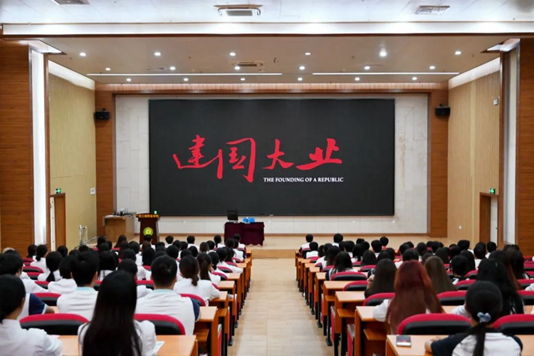 9月27日,学校组织各二级学院学生代表在图文信息大楼报告厅共同观看了红色电影《建国大业》。