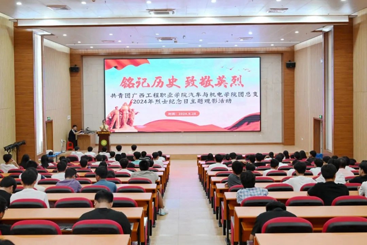 为了铭记历史、缅怀先烈,激发学生们爱国热情,汽车与机电学院于9月28日,在图文信息大楼一楼学术报告厅开展“铭记历史致敬英烈”烈士纪念日主题观影活动。集中观看影视作品《长津湖之水门桥》。