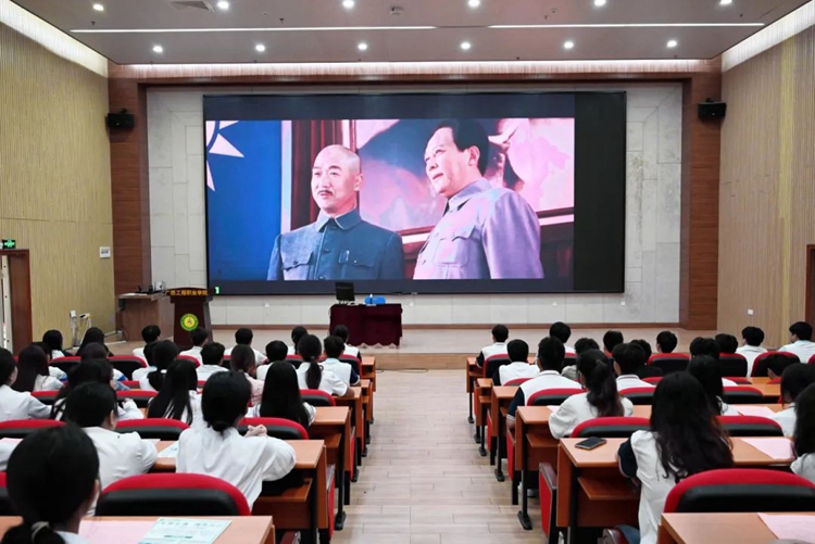 同学们的目光紧紧追随着画面,他们的神情专注而认真。每一个场景、每一句台词,都仿佛带着他们穿越时空,回到那个波澜壮阔的革命年代。他们看到了先辈们为了国家的独立和民族的解放,不惜抛头颅、洒热血,用生命谱写壮丽的史诗。
