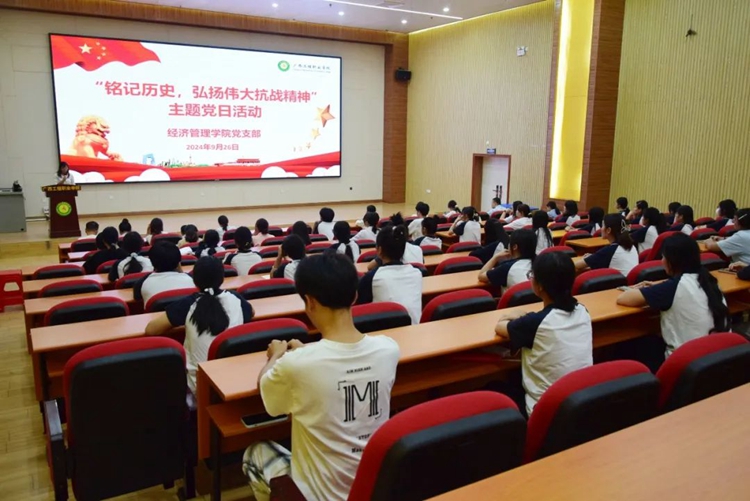 9月26日,经济管理学院举行“铭记历史,弘扬伟大抗战精神”主题党日活动,组织观看历史题材影片《东京审判》,通过活动的开展铭记历史,弘扬伟大抗战精神,激发学生的爱国主义情怀,强化学生肩负民族复兴重任的责任感与使命感。