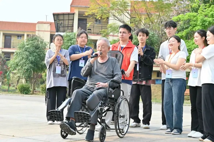在校团委副书记李丽清的组织带领下,志愿者们与老人谈笑风生,谈心话家长,亲切问候老人的身体健康,科普健康知识,祝愿他们身体康健,心情舒畅。