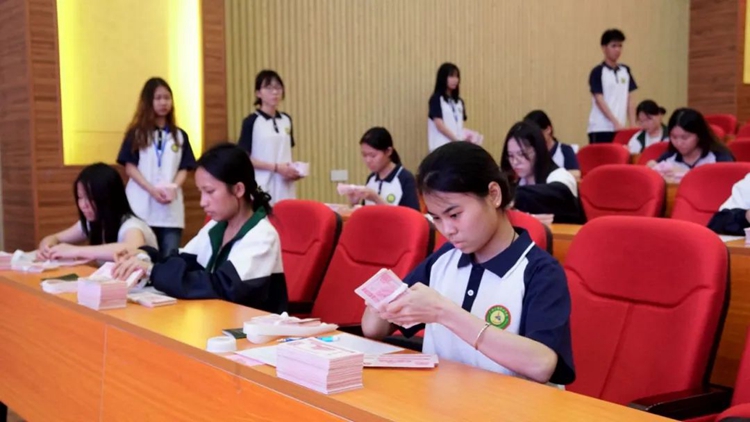 指尖上的速度与激情——点钞。在赛场秒表跳动的滴答声中,选手们指法如飞。单指单张的精准把控,多指联动的行云流水,扇形捻开的炫目技法,将原本单调的点钞工序升华为指尖艺术。