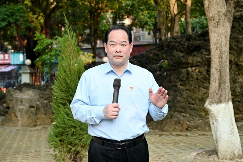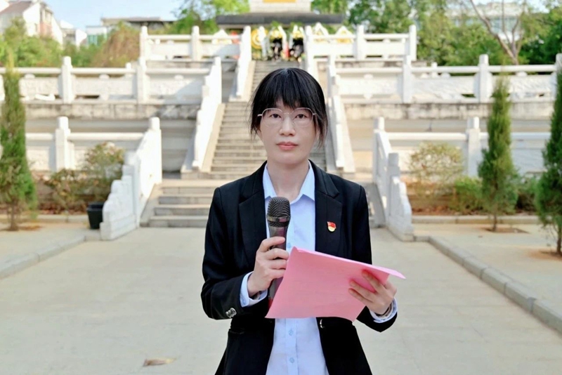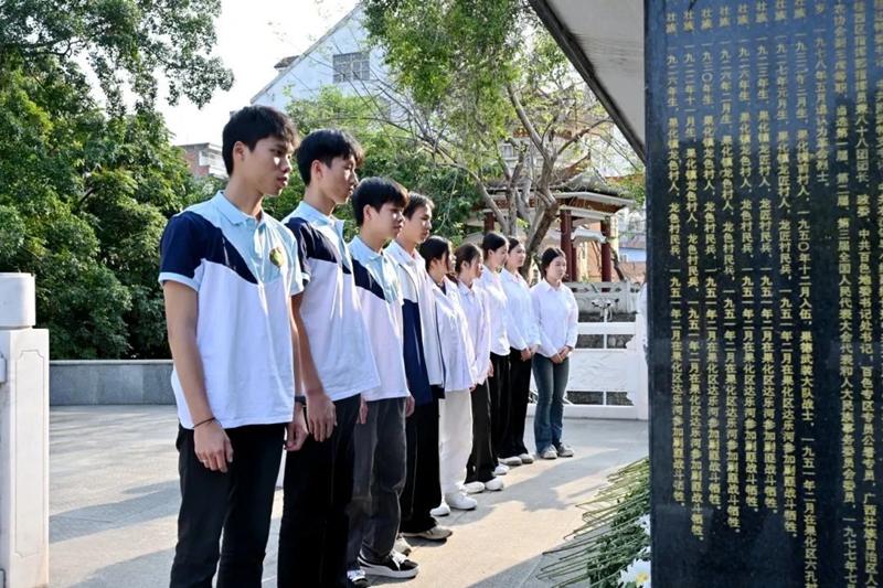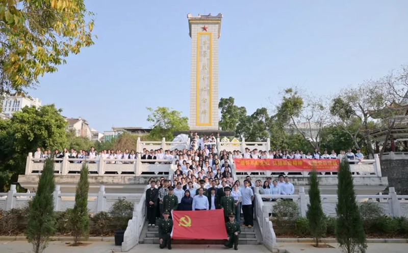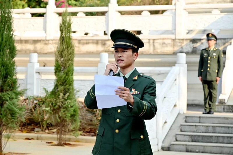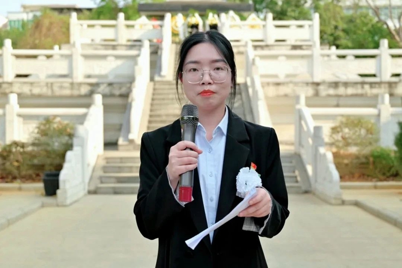 活动中,蒙本曼同志带领全体老党员重温入党誓词,新党员进行入党宣誓。全体党员在革命烈士纪念碑前,握拳举起右手,面向鲜红的党旗庄严宣誓,表明了继承革命先烈遗志,奋发向上的决心。随后,教师代表黄晶晶同志、学生代表王华铭同学分别进行了发言,表示今后在学习工作中要时刻铭记革命先烈功勋,弘扬革命精神,传承好红色基因,发扬好红色精神,守正创新,踔厉奋发,勇毅前行,敢于奉献,为实现中国式现代化贡献自己的力量。、