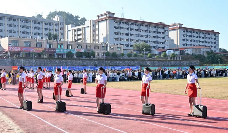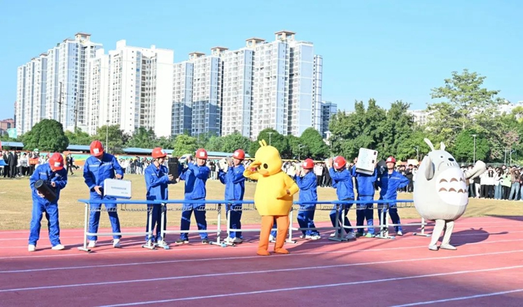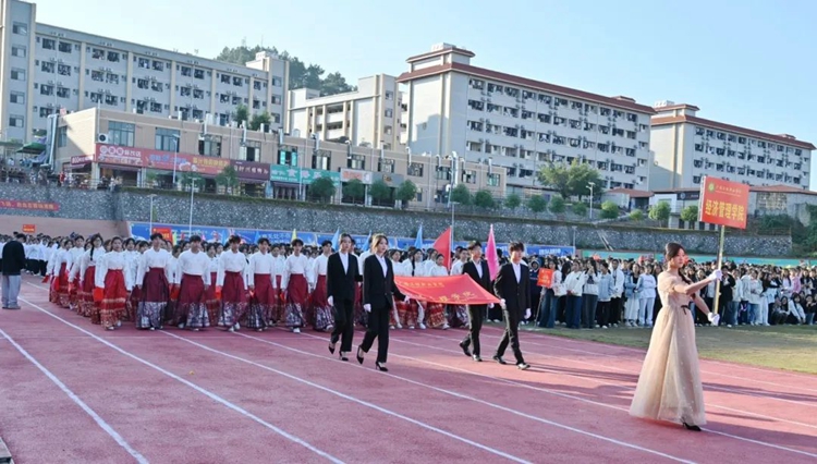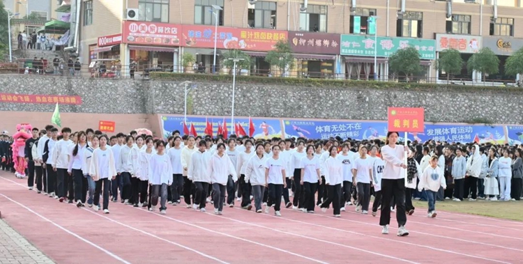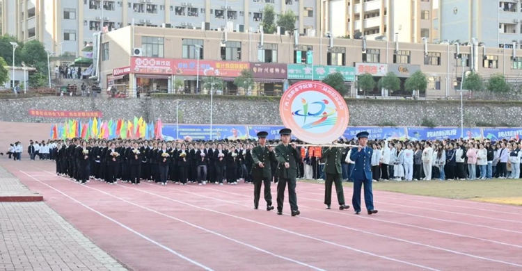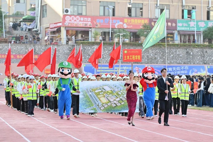在阳光明媚、充满活力的校运会上,随着激昂的音乐响起,各方队依次踏着整齐的步伐,缓缓步入会场,展现着广工程院学子的青春风采与精神风貌。