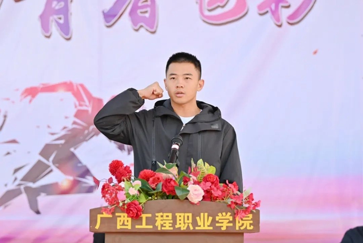 运动员代表汽车与机电学院2023级章昊同学宣誓,表示,他们将秉承“友谊第一,比赛第二”的优秀传统,严格遵守比赛规则,坚决服从裁判,尊重对手、尊重观众,以饱满的热情认真比赛,发扬顽强拼搏精神,赛出风格,赛出水平,为班级争光。
