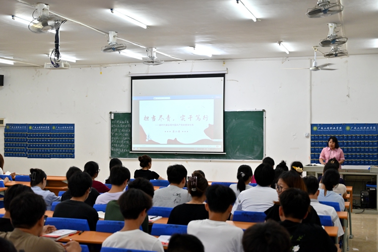图为党委副书记、校长罗艳妮作题为《担当尽责,实干笃行》的专题培训