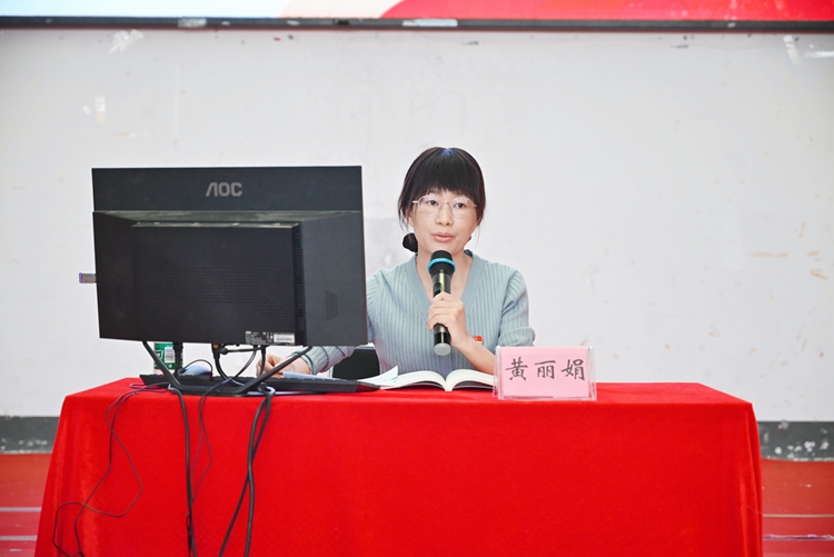 图为党委宣传部部长黄丽娟作题为《领悟思想,筑牢根基》的专题培训