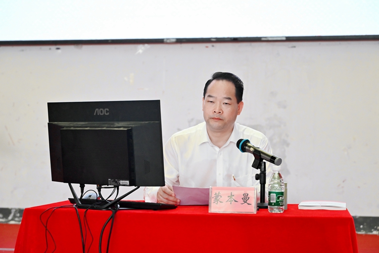 图为党委书记、政府督导专员蒙本曼作开班讲话