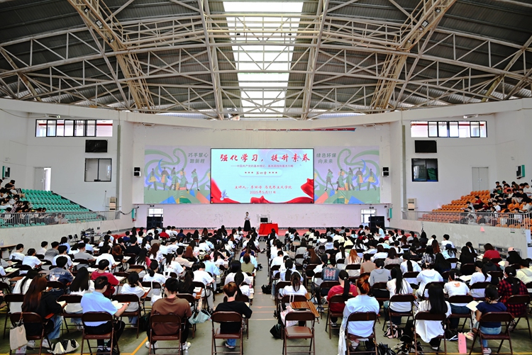 图为马克思主义学院副院长李丽诗作题为《强化学习,提升素养》的专题培训