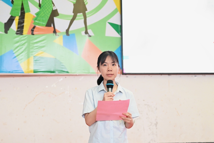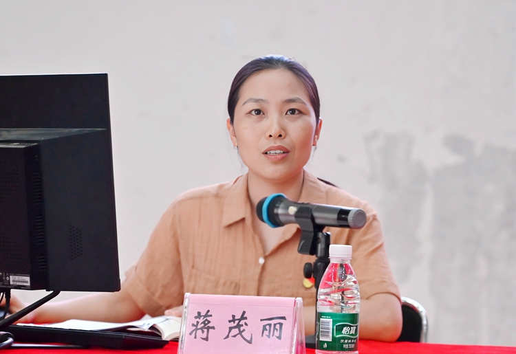 图为党委办公室科长蒙文怡作题为《红色洗礼,砥砺前行》的专题培训