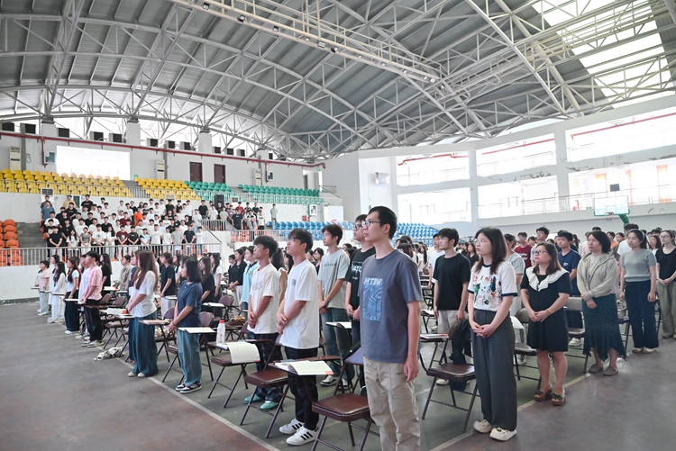 图为全体起立,奏唱国歌