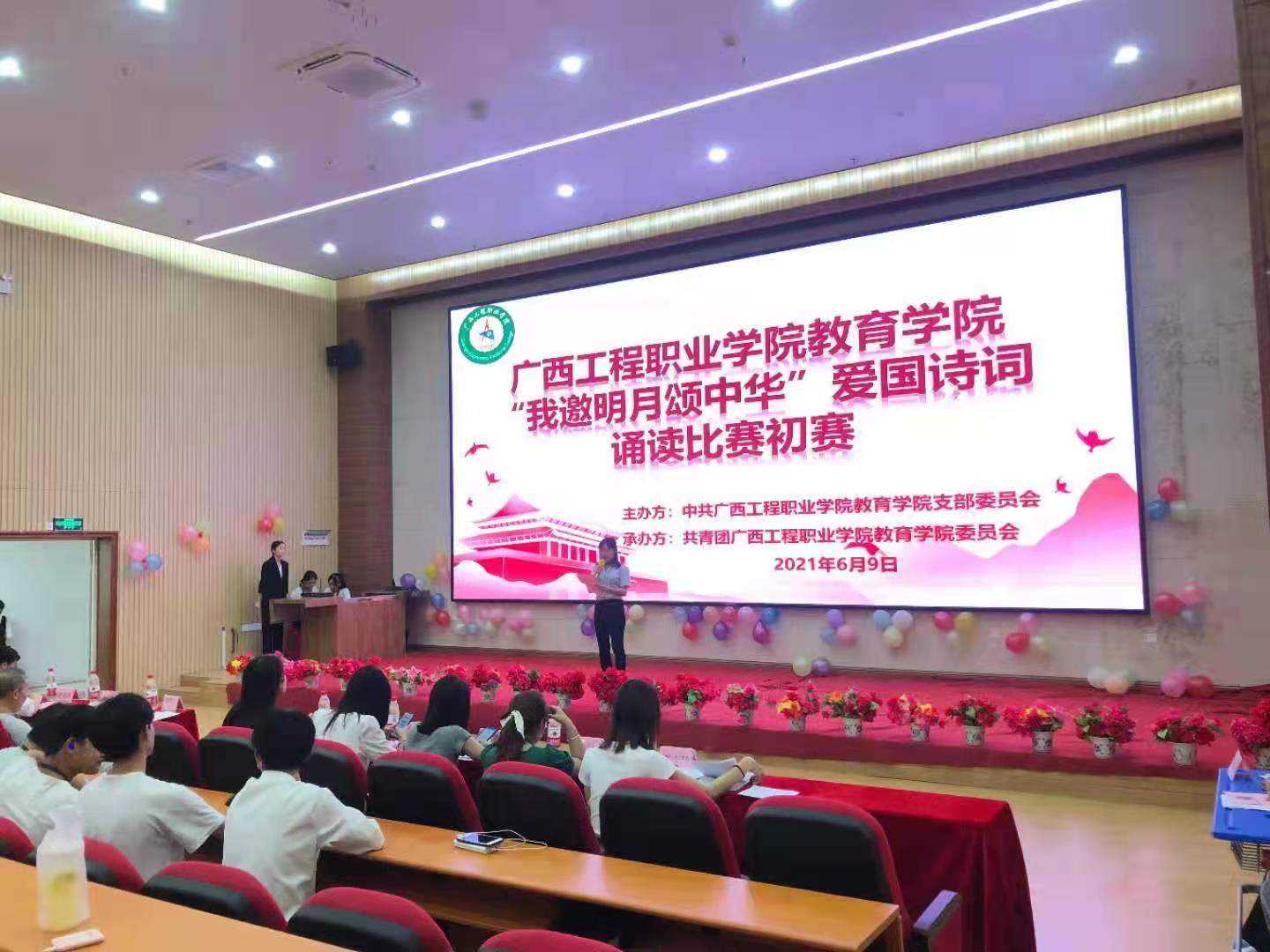 2021年6月9日晚上19:00,我院在图文信息大楼一楼学术报告厅举行beat365唯一官网教育学院“我邀明月颂中华”爱国诗词诵读比赛初赛,出席本次活动的嘉宾有:学校副校长胡细木,学校副校长林萌,教育学院副院长梁善雅,教育学院分团委书记谢安妮,教育学院办公室主任吴棉以及教育学院全体辅导员。