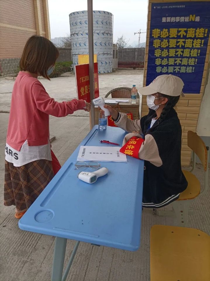 在每栋宿舍楼,食堂门口设岗,我学院学生会同学为了确保同学们的安全进出入宿舍都需要进行量体温,积极的为每一位同学测量体温,同学们也都认真的配合工作人员。