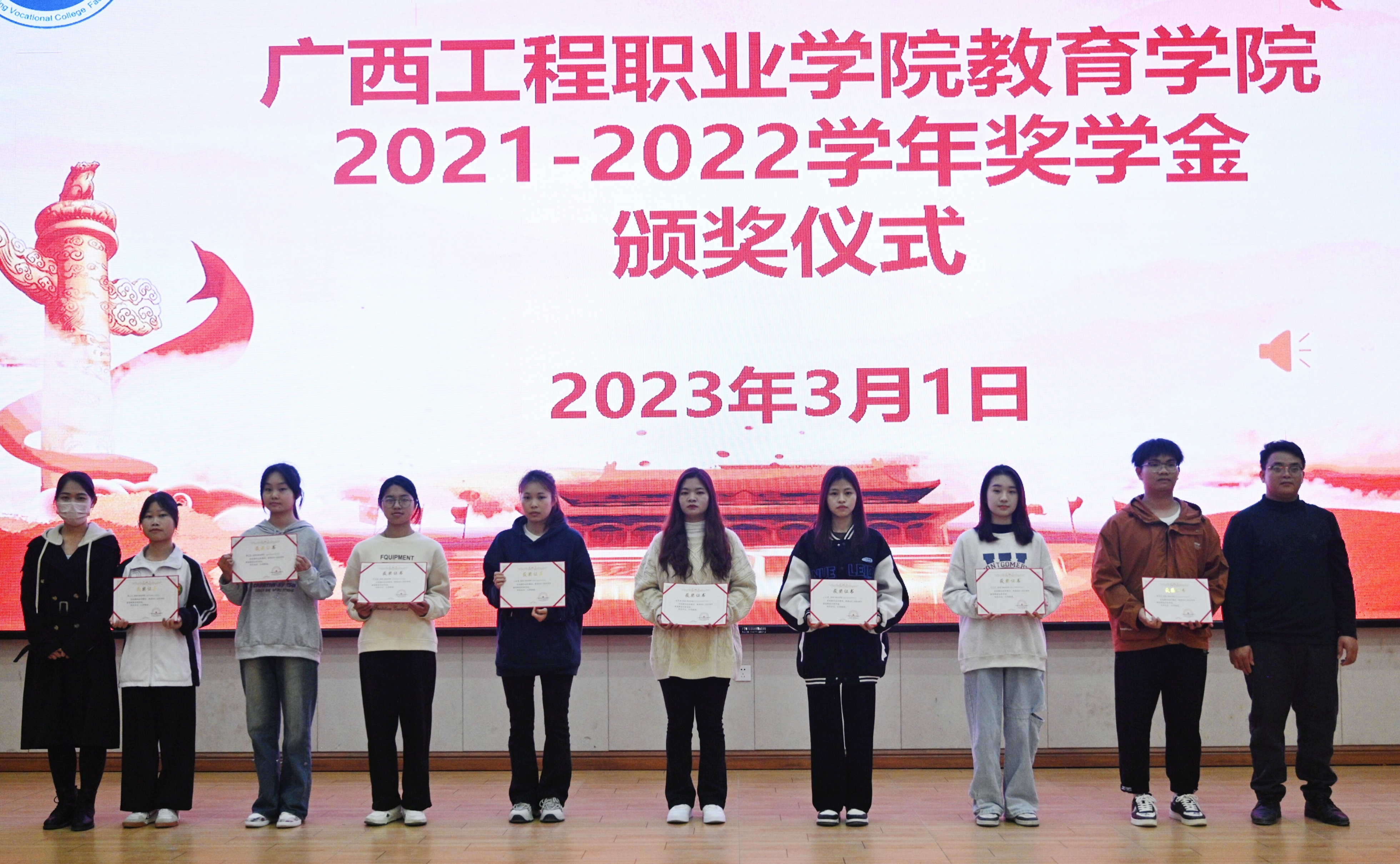 教育学院院长梁凤琴、教育学院党支部副书记卢燕梅、教育学院办公室主任农淑娟、教育学院学生科科长李丽清以及教育学院全体辅导员、专任老师、获奖学生出席本次颁奖仪式。