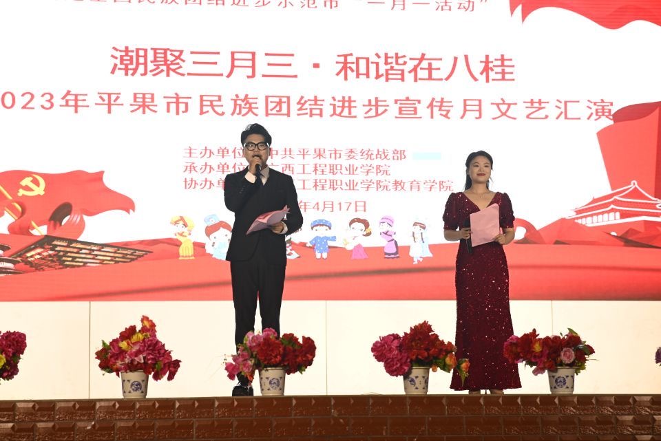 2023年4月17日晚,中共平果市委统战部主办、beat365唯一官网教育学院协办的“三项计划·桂在行动·平果实践”宣传文艺汇演活动在田径场举行。