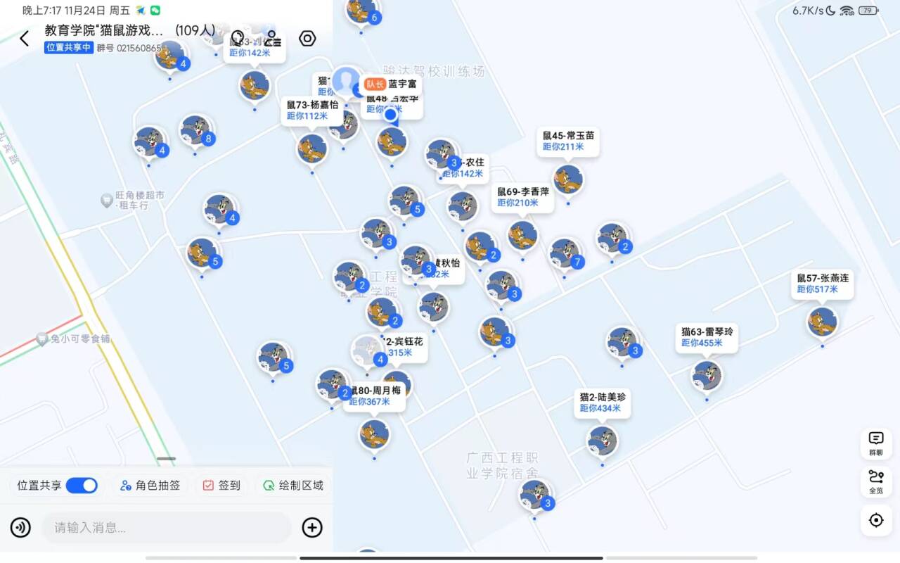 在"猫鼠追逐赛"中,两组选手将分成猫和老鼠两个阵营,进行一系列有趣的互动游戏。通过软件APP高德地图定位开启实时共享的同时,他们也需要相互配合,利用各种技巧和策略来捕捉对方阵营中的成员并赢得胜利。