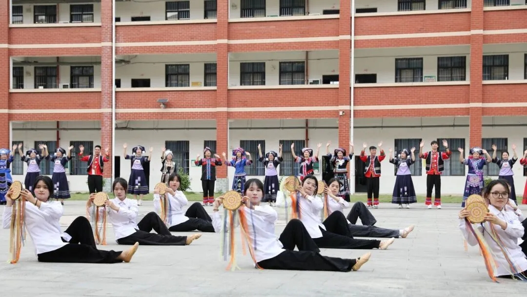 莲鼓越歌行是一种源于中国传统文化的舞蹈形式,具有丰富的内涵和独特的表达方式。它独特的舞蹈特点和古老的历史背景使其成为中国民族舞蹈文化的重要组成部分,也是世界文化遗产的瑰宝之一。在学校教学区小广场,莲鼓越歌行的舞者们手持鼓棒和莲花,配合鼓声和歌曲的旋律,跳跃着独特的舞步,展示出优美、热烈、充满活力的舞蹈文化。
