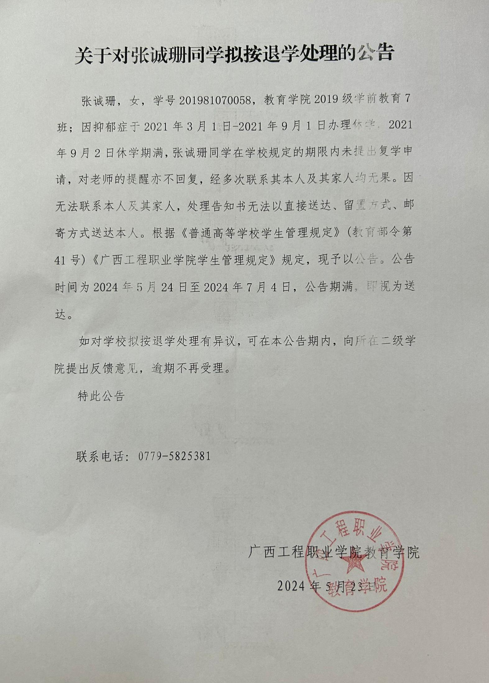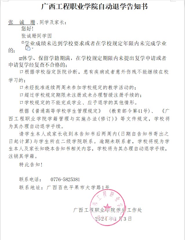 下一篇:关于对李介玲同学拟按退学处理的公告