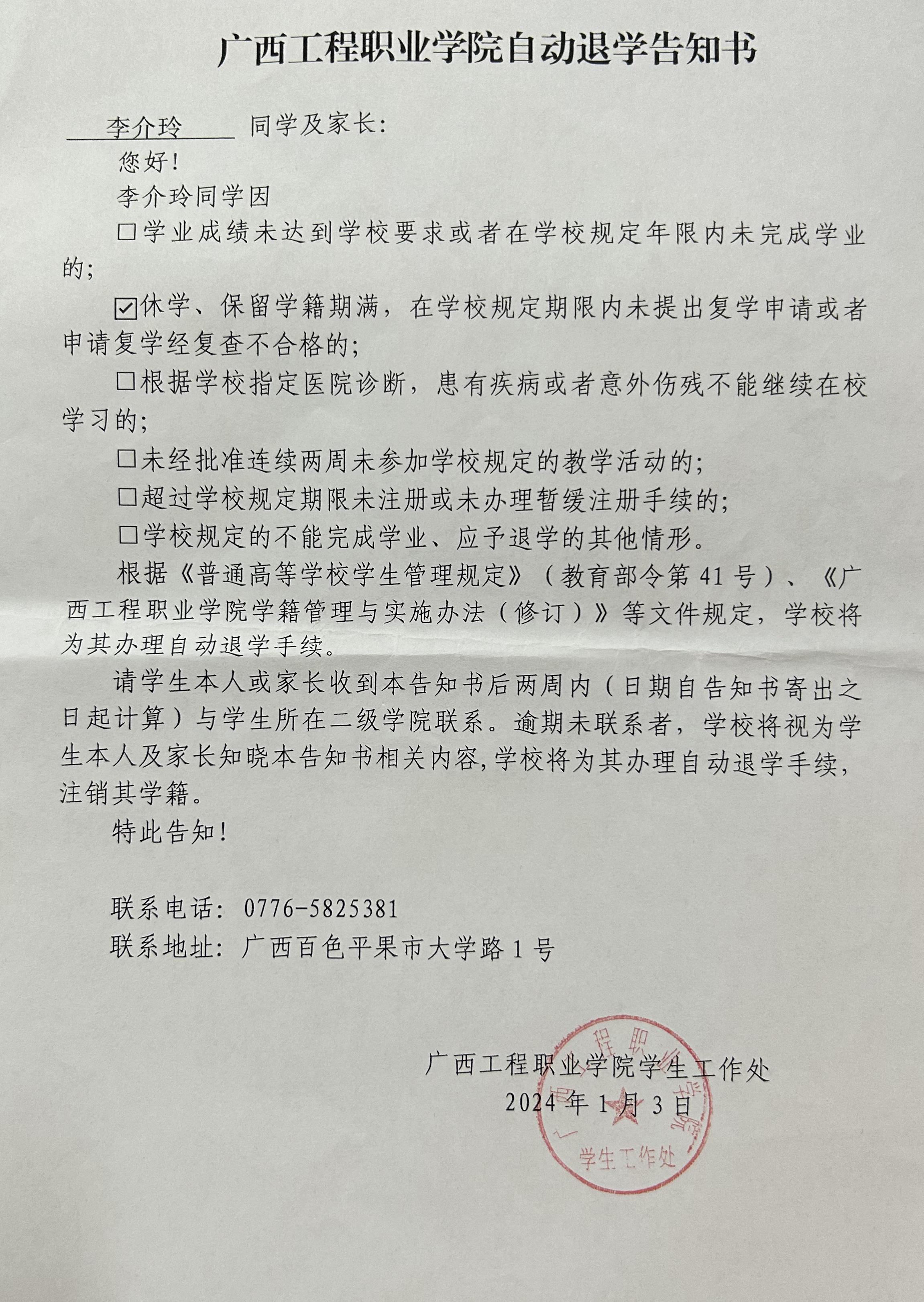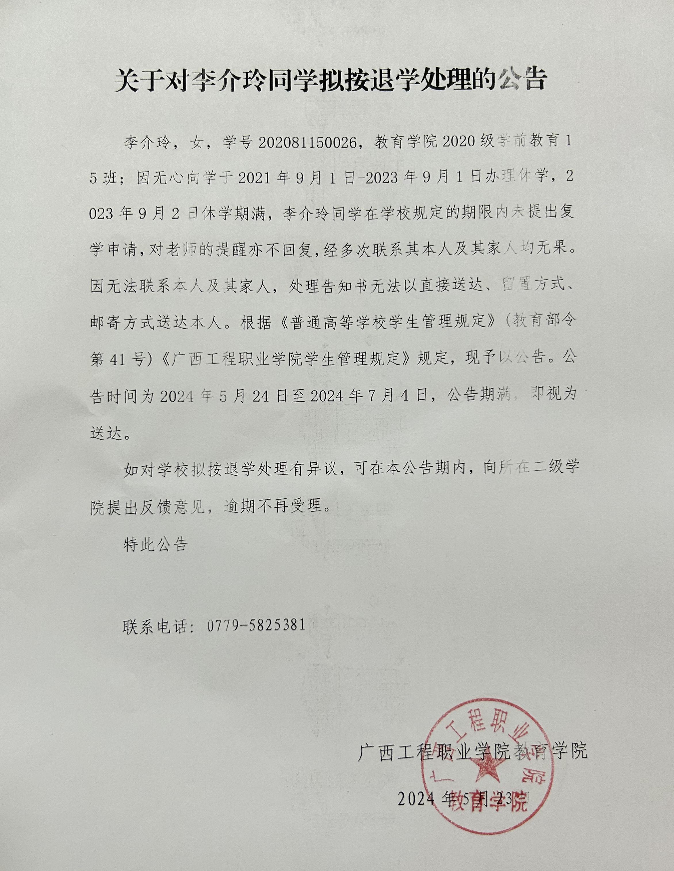 下一篇:关于对韦球同学拟按退学处理的公告