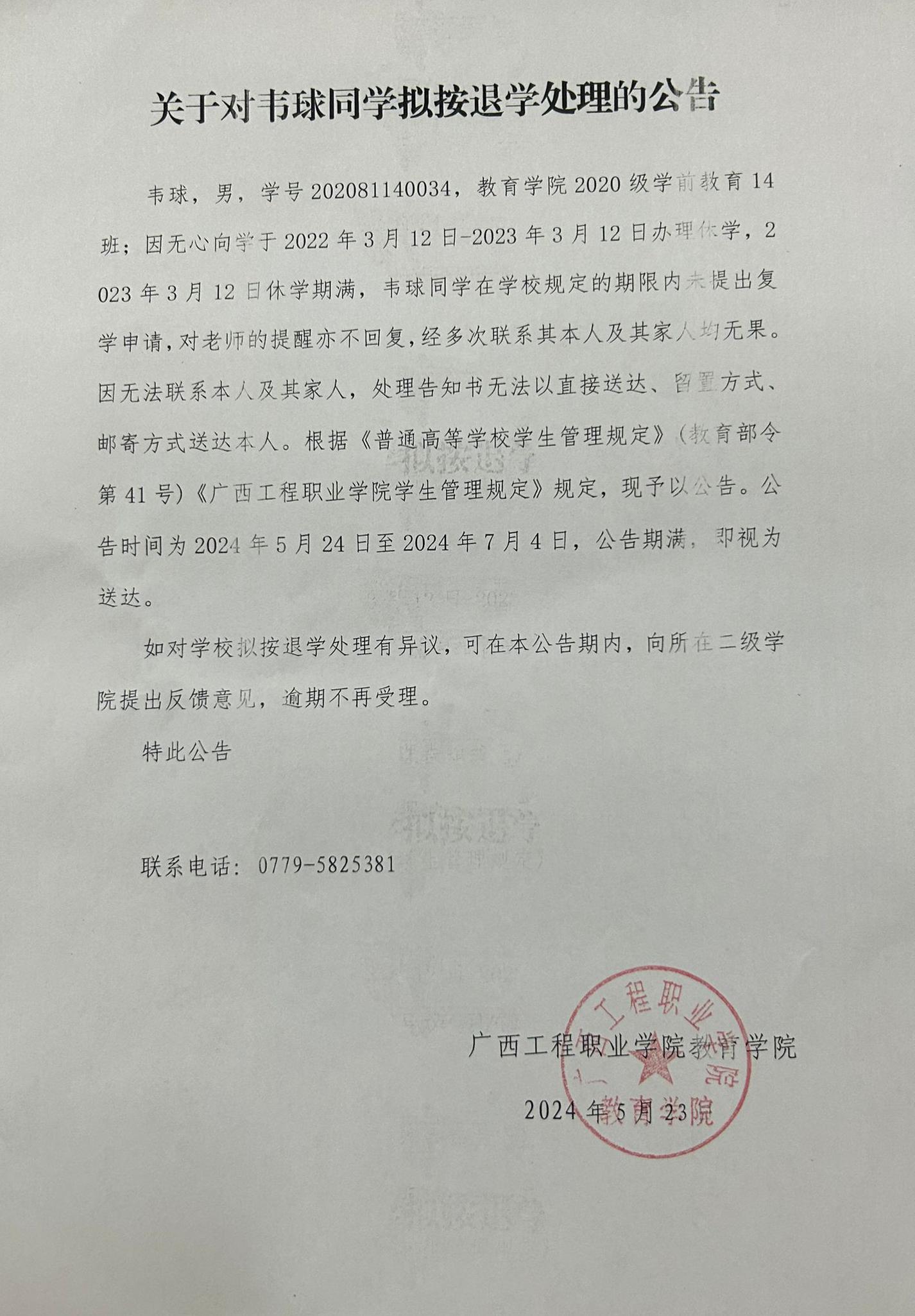 上一篇:关于对李介玲同学拟按退学处理的公告