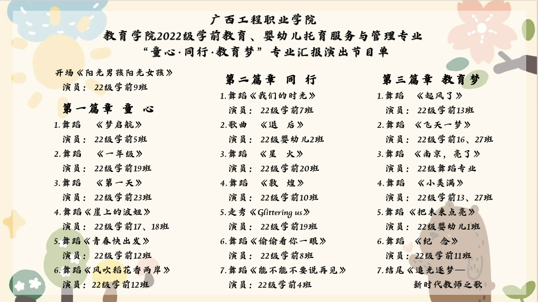 时光荏苒,岁月如梭。一路走来,鲜花与掌声同在,欢笑与成长共存,致敬青春无悔的岁月。2024年6月5日,beat365教育学院在体育馆开展以“童心·同行·教育梦”为主题的2022级学前教育、婴幼儿托育服务与管理专业汇报演出。