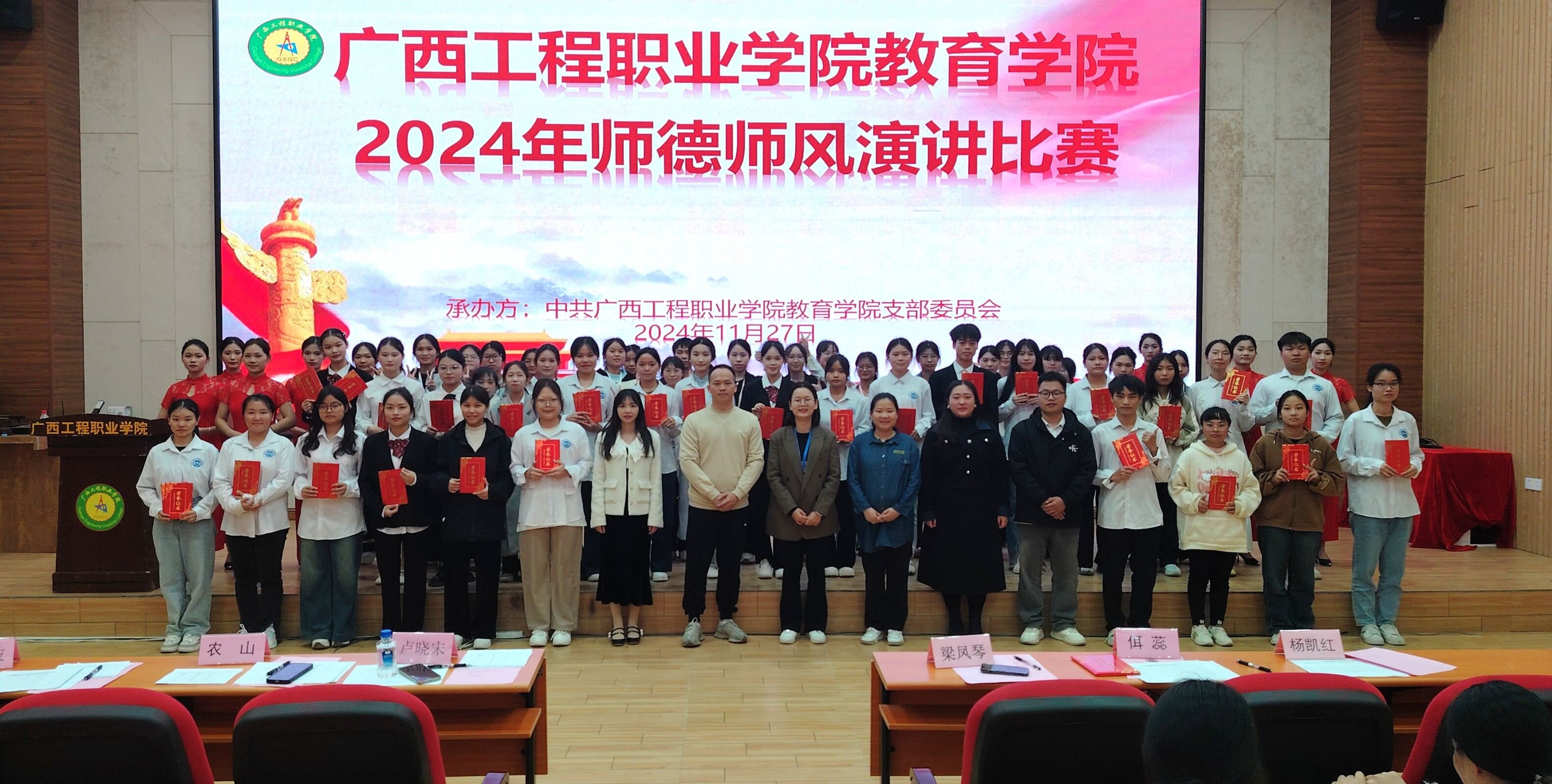 为进一步弘扬教育家精神,营造尊师重教氛围,引导师范生坚定理想信念,激发教师职业荣誉感和教书育人积极性,全方面提升教育学院师范生整体素质。我院于2024年11月25日至27日在图文信息大楼一楼学术报告厅举办师德师风演讲比赛。本次比赛分为主题演讲、即兴演讲两个环节来进行。