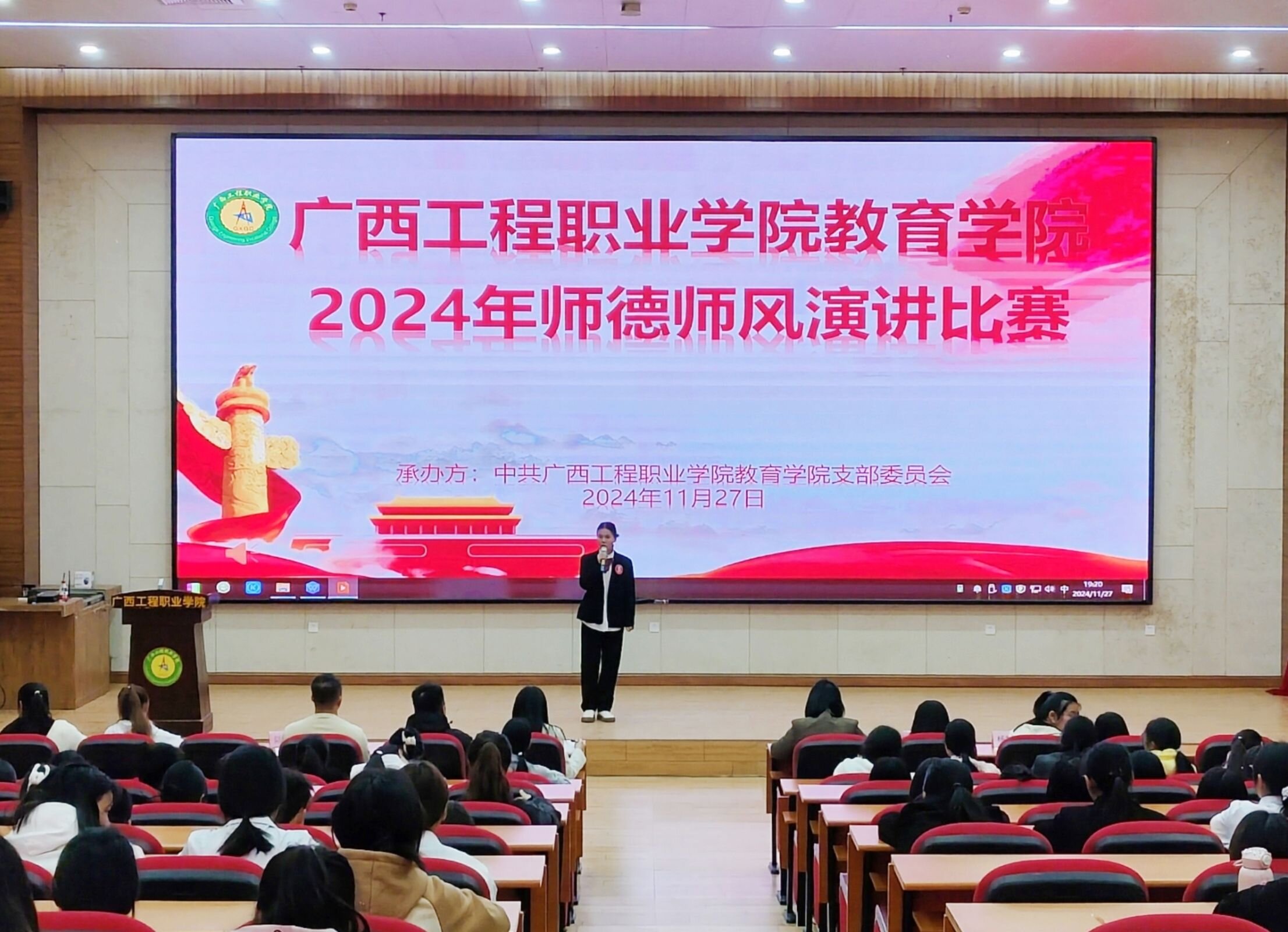 比赛现场,来自教育学院各个班级的选手们紧扣主题,以饱满的热情和真挚的情感,从不同角度阐述了对师德师风的理解与感悟。他们或讲述身边教师的感人故事,或表达对教育事业的无限热爱。选手们的精彩表现赢得了现场观众的阵阵掌声。