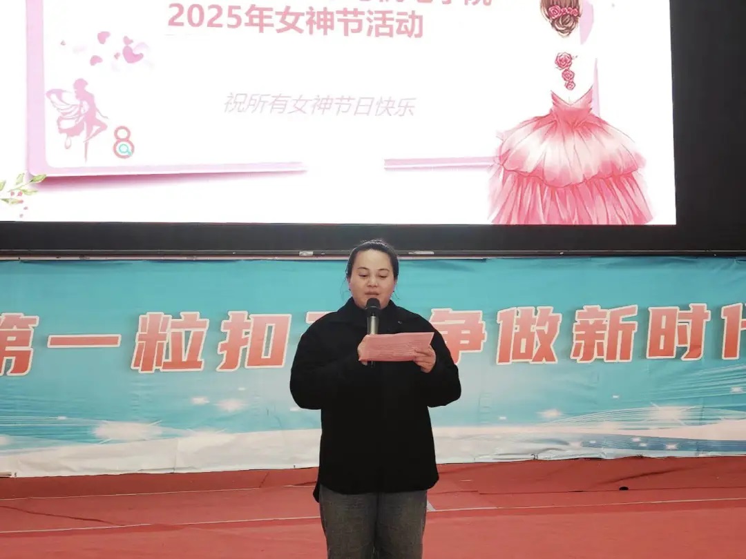 教育学院办公室主任农淑娟致辞,她表示“女神节,是专属你们的节日,也是庆祝你们独特魅力和卓越成就的日子。它不仅仅是一个欢乐的聚会,更是对你们辛勤付出和不懈努力的认可与赞美。在这个特殊的日子里,我希望你们能够更加自信地展现自己,勇敢地追求自己的梦想。不要害怕困难和挑战,因为你们有着无比的毅力和勇气去战胜它们。相信自己,你们每一个人都是独一无二的,都有着属于自己的闪光点。”