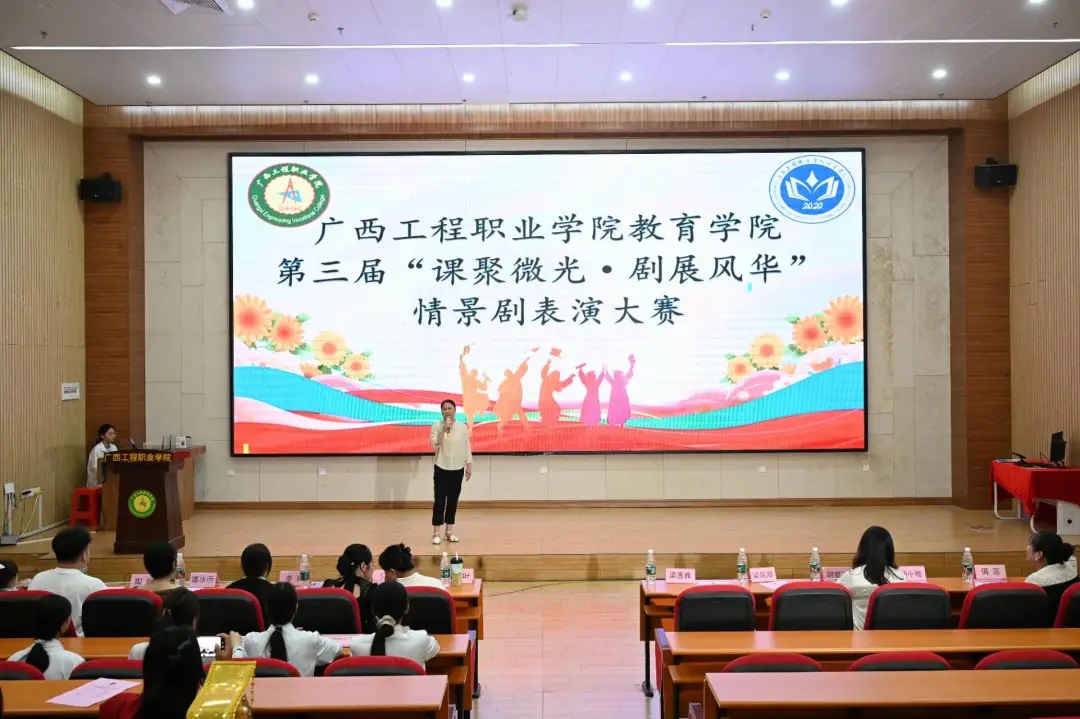在课堂的方寸之间,我们曾与知识的星辰相遇;在剧本的字里行间,我们曾触摸情感的温度。每一幕情景剧,都是一颗凝聚智慧与创意的微光;每一次演绎,都是一次对生活与成长的深情诠释。2025年5月29日教育学院在图文信息大楼一楼学术报告厅开展了第三届“课聚微光,剧展风华”情景剧比赛活动,出席本次活动的领导有:校长助理梁善雅、学生工作处处长梁凤琴、教育学院院长胡星萍、党支部书记杨小樱、办公室主任雷红、分团委书记佴蕊。担任本次比赛的评委老师有:梁春叶、彭媛、李婷、谭冰雨、陶辉。