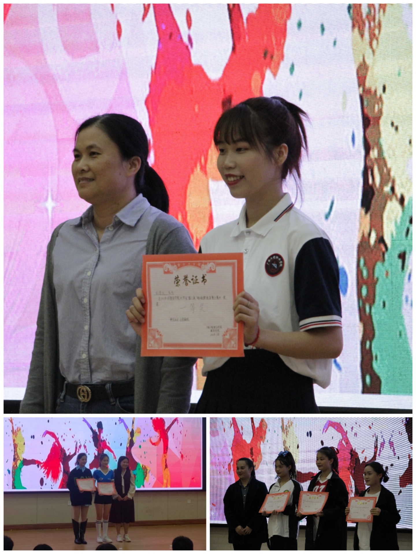 最后,到了令人激动的环节,我们的颁奖环节,主持人邀请副院长梁善雅老师、卢燕梅老师、农淑娟老师为本次获得第一名、第二名、第三名的队伍进行颁奖。